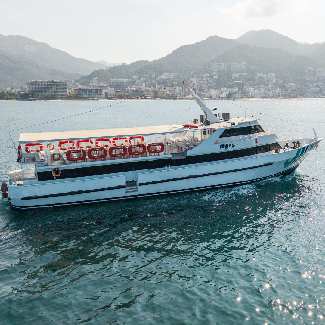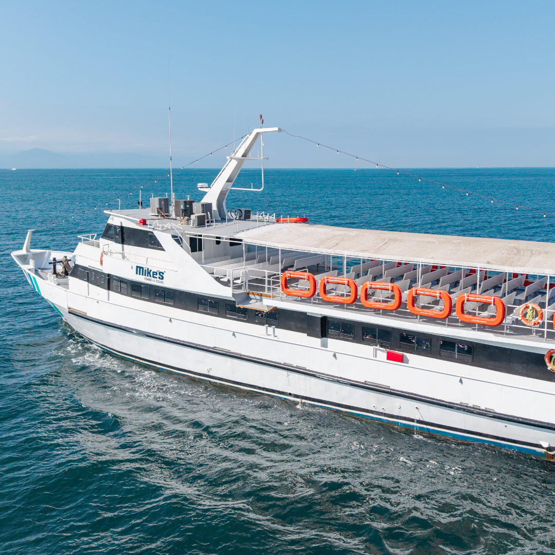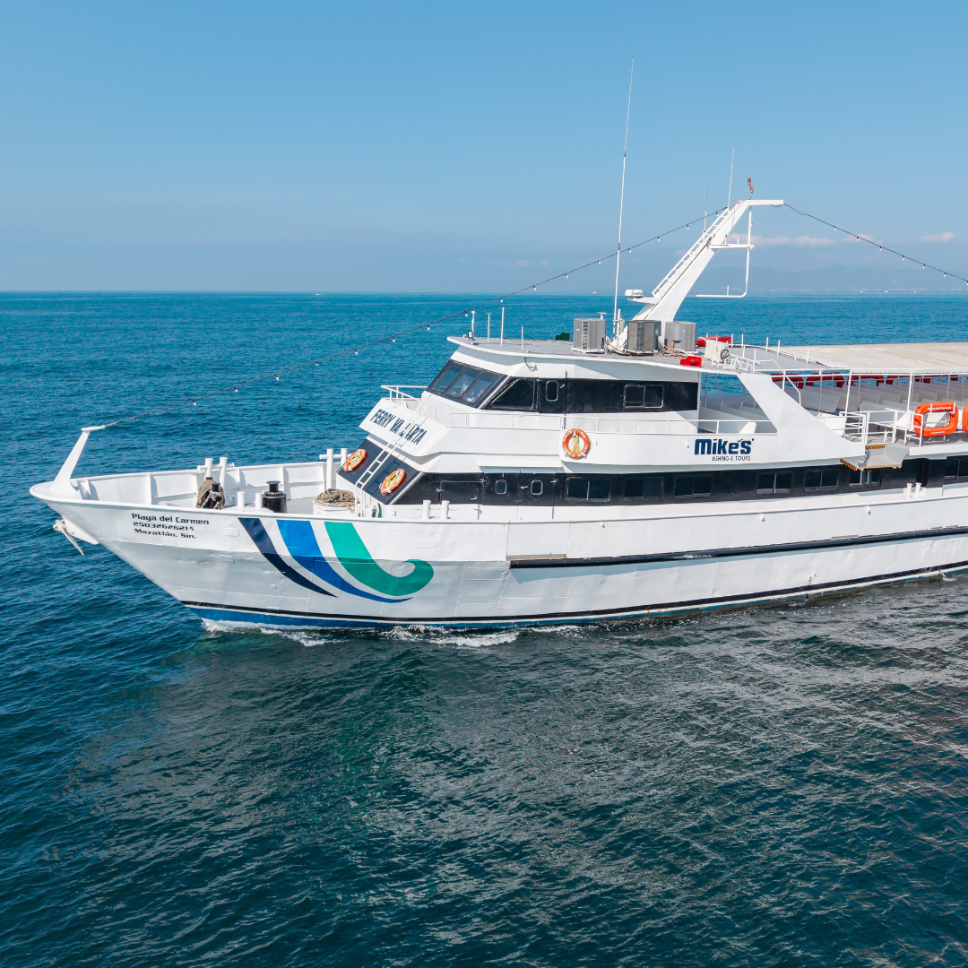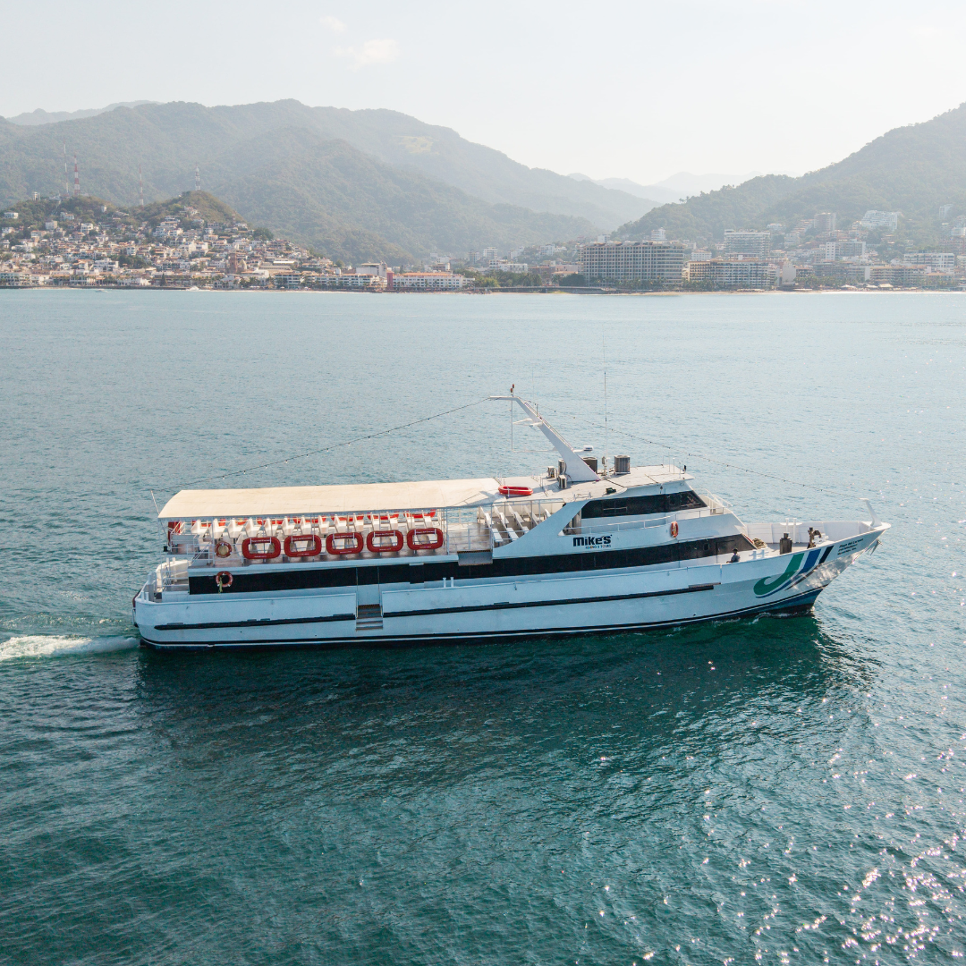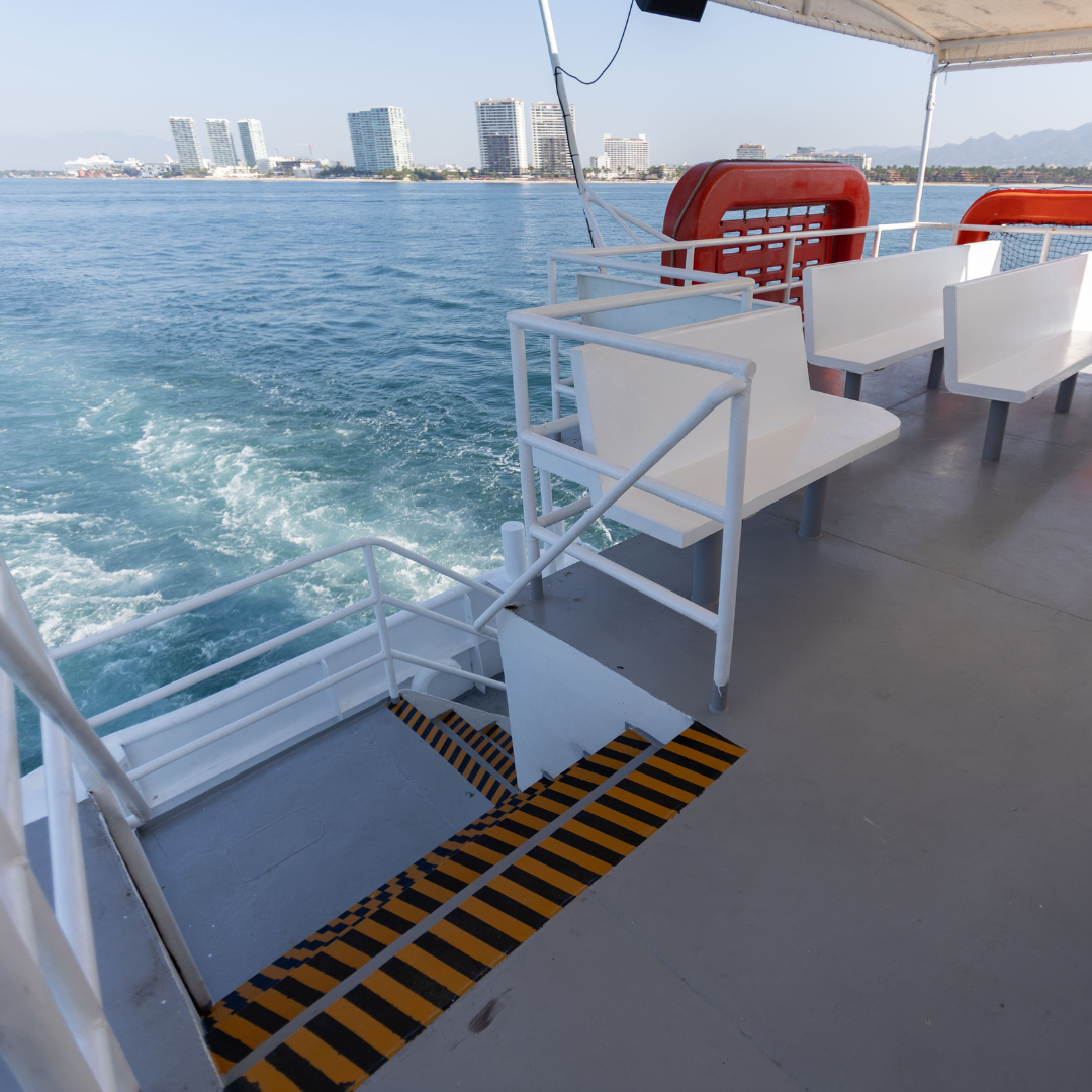 Embárquese en una experiencia única a bordo del “Playa del Carmen”, una embarcación espaciosa diseñada para su máxima comodidad. Relájese en nuestra área interior con aire acondicionado, con capacidad para 250 personas, o disfrute de la brisa marina desde la cubierta abierta mientras navegamos por la impresionante Bahía de Banderas.