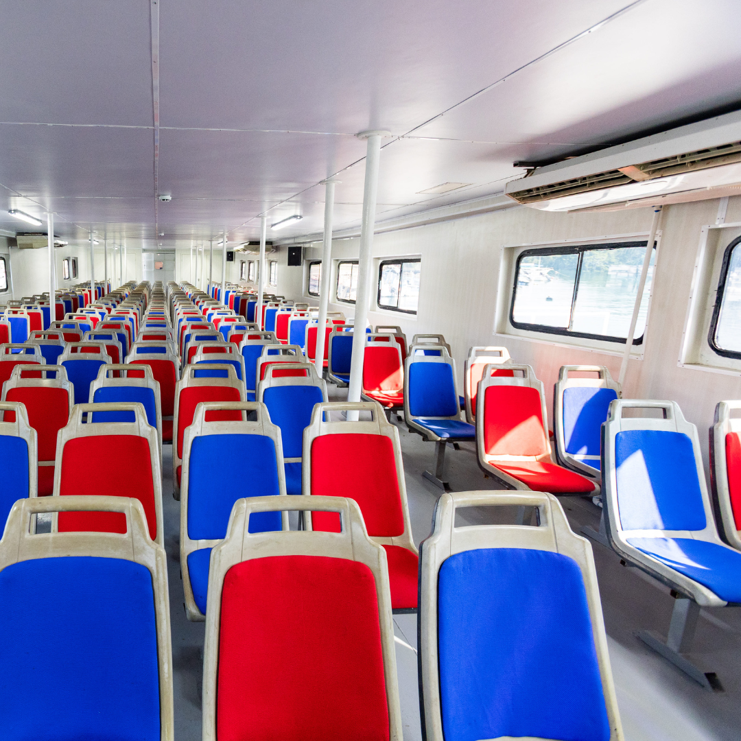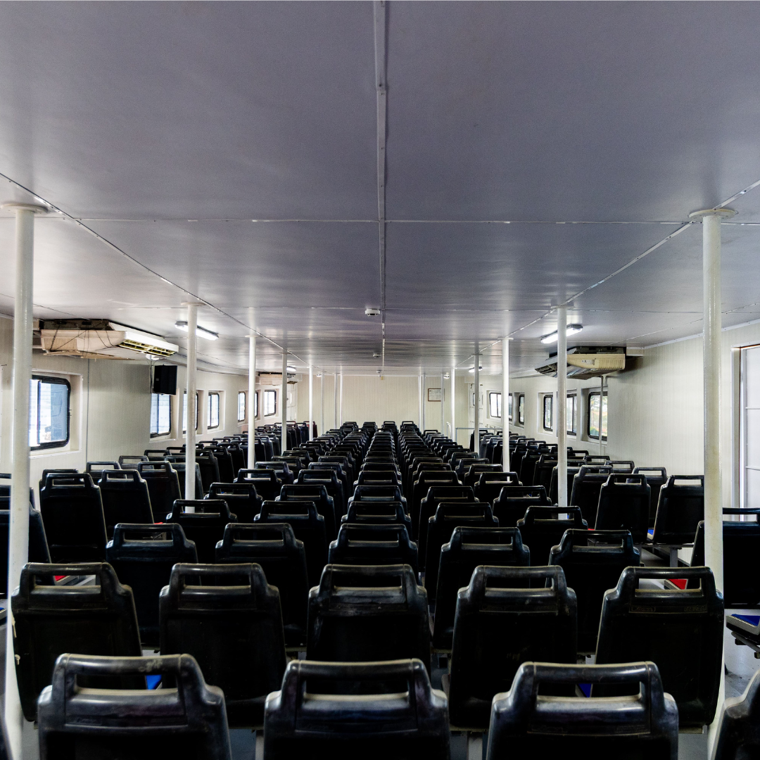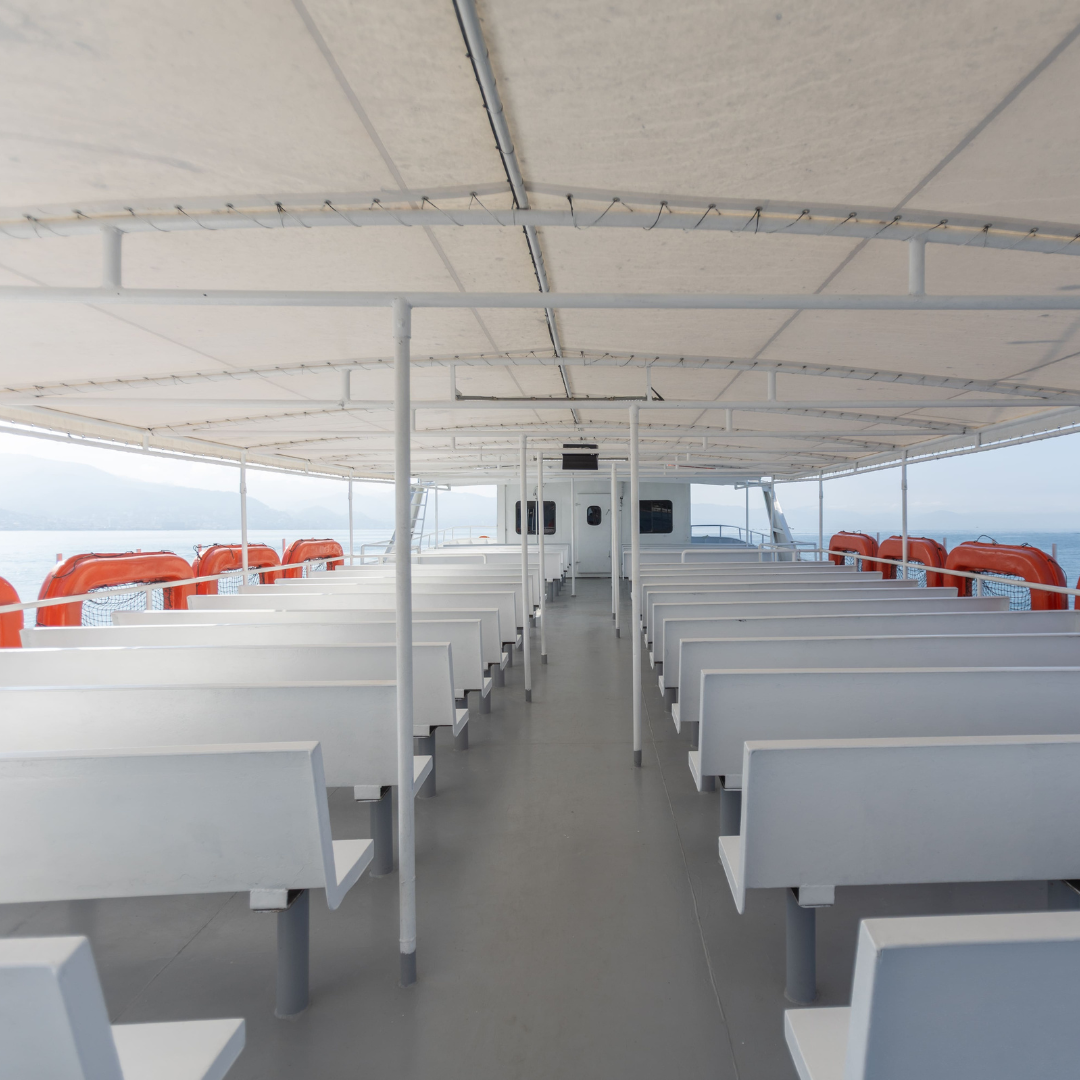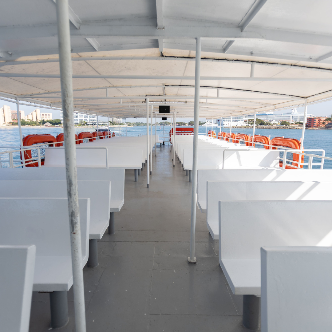 ¡Por supuesto! A diferencia de los taxis acuáticos pequeños (pangas), nuestro ferry tiene capacidad para hasta 400 pasajeros y ofrece una navegación muy estable. Cuenta con una amplia área interior con aire acondicionado para 250 personas, lo que lo hace ideal para familias, niños y adultos mayores que buscan un viaje cómodo y seguro.